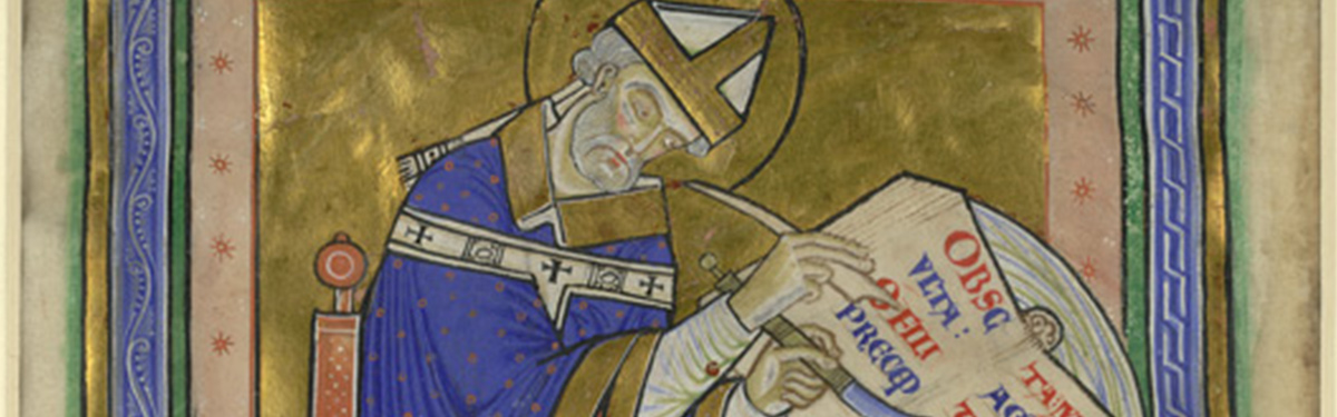Hero image credit: A 12th-century manuscript illustration showing St Dunstan writing out the Rule of St Benedict, copyright British Library Board (Royal 10 A. XIII/f.2v).
