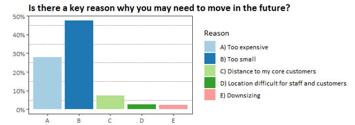The impact of COVID 19 in transport and urban planning will likely affect short- and long-term decisions worldwide. Most businesses have been required to shift towards working from home (WFH) which will likely have an important effect after this crisis is over. Early 2019 we conducted a survey where we asked businesses around the Greater Sydney Metropolitan Area for their location decisions (Balbontin & Hensher, 2019ab). When trying to understand possible reasons to move in the future (see Figure 1), our study found that 48% of businesses said they would probably move because their current space was too small. The figure below shows other interesting findings in terms of reasons for possible relocation, such as 2% of respondents said they might need to downsize.