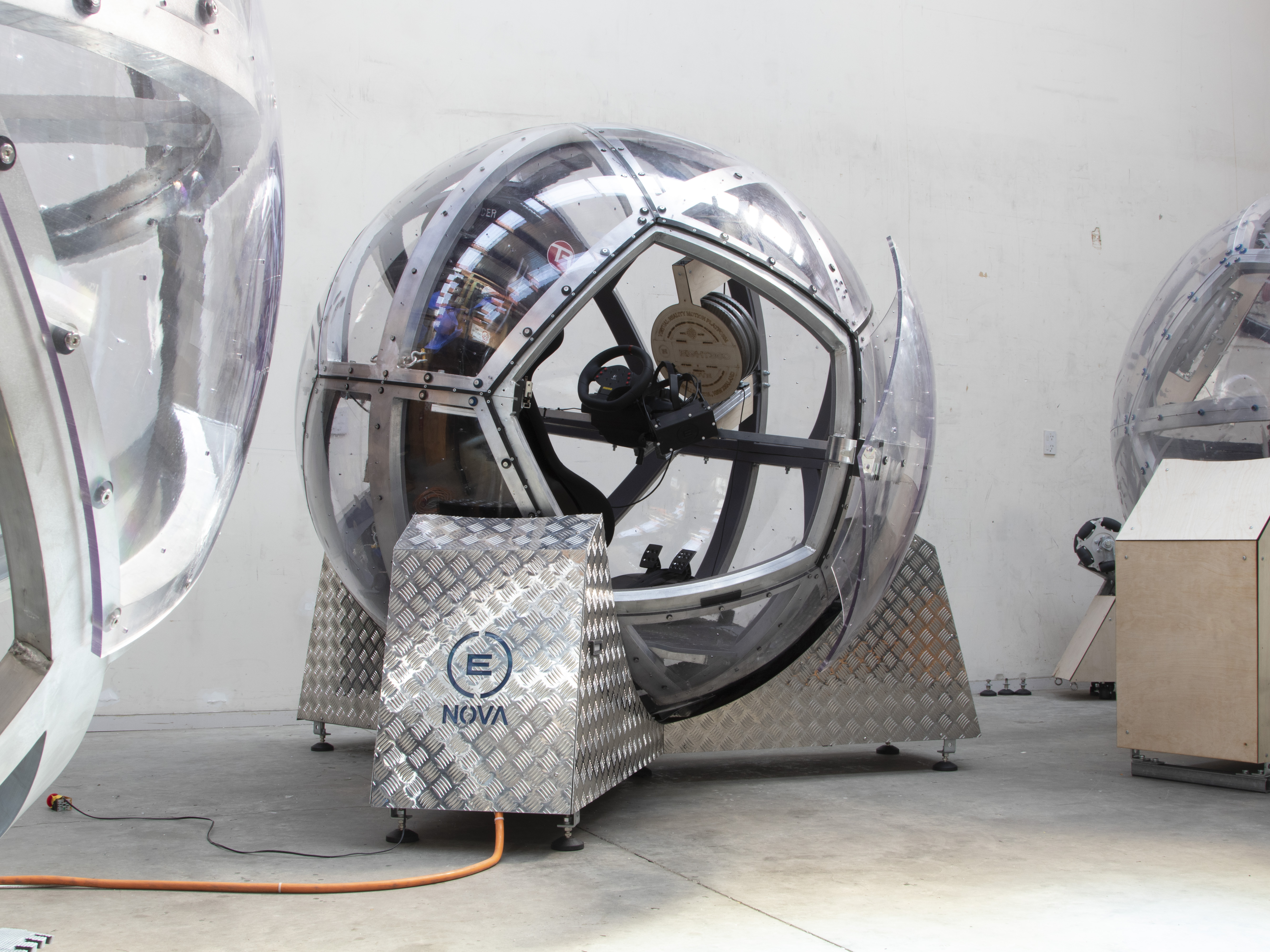 The main simulator is a state-of-the-art Eight360 NOVA simulator. It features a 360-degree virtual reality cockpit that replicates the experience of piloting any aircraft, from an A380 to a spaceship. Mechanically, it is realised via an untethered freely mobile ball resting on rollers that provides unlimited rotational axes, which makes complex movements like spinning and inverted flight possible. It has the potential to be used for simulated space environments, including controlling crewed vehicles on planet surfaces.