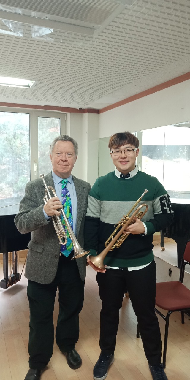 My trumpet teacher was in fact an American trumpet player, Bruce C. Barrie. During my time at SNU, I felt I was able to learn so much in a short time as I was the only brass student that could speak English fluently! I learnt a lot about technique, practice methods and routines that I believe helped me further develop my musicality and skills. It was a pleasure to learn under Professor Barrie, with whom I embarked on an explorative musical journey, first isolating and refining different elements of technique to ultimately achieve enhanced and balanced technique and musicality.