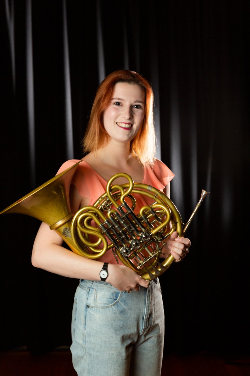 Student Gemma Lawton with French horn