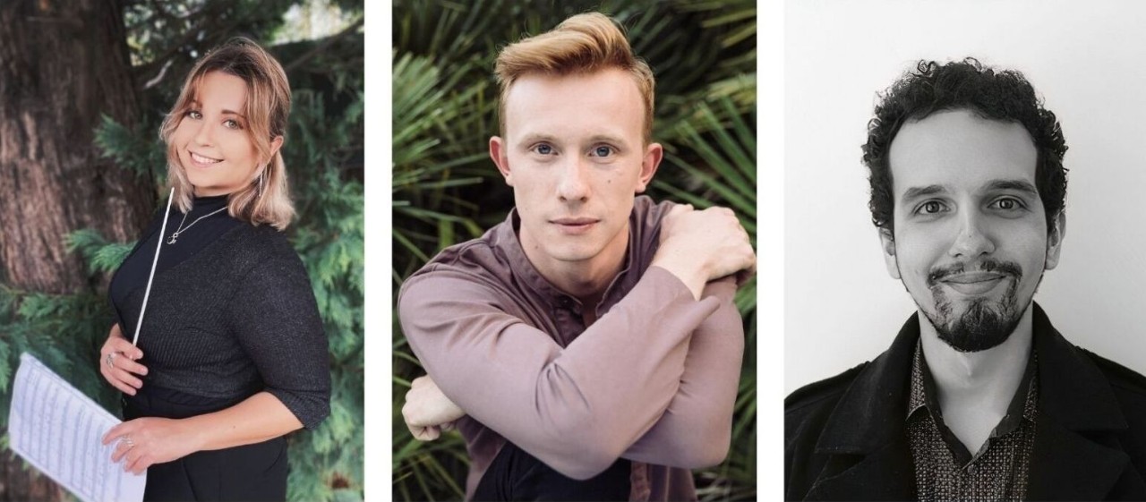 Composers and Sydney Conservatorium of Music students Aija Draguns, Tomas Parrish-Chynoweth and Aidan Charles Rosa