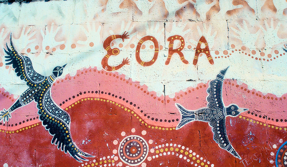 Header image: Mural in Eveleigh St, Redfern (Photograph by Mikey Johnstone). Mural design by Danny Eastwood [NAIDOC Aboriginal Artist of the Year in 1993] and local artist, James Simon, with contributions from local residents.