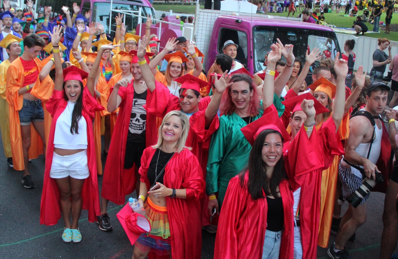 A sea of rainbow-coloured gowns and mortar-boards lent a bookish edge to Sydney's Gay and Lesbian Mardi Gras on Saturday night, with 75 students and staff members joining the fun as part of the University of Sydney's first-ever float.