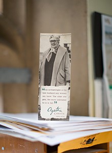 I’ve been reading Agatha Christie’s books since I was a teenager and these days I give talks about her. She worked as an archaeologist, with her second husband, in what is now Iraq and Syria. Part of the reason she was so prolific was that she was stuck in a desert dig house for four months of the year with nothing to do but bang out a book on a typewriter. What’s amazing for me is that we have material in the Nicholson collection that Christie actually cleaned. The card has a joke on it that was attributed to Christie but it was really written by her publicist. It says that every girl should marry an archaeologist because the older she gets, the more interested in her he’ll become.