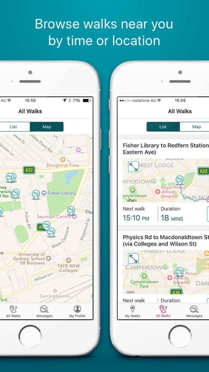 Routes in the app were crowdsourced from students and staff and take users across campus and on to nearby sites including Glebe, Broadway, Victoria Park and Redfern train station. Developed with tech partner, Boomworks, each walk in the app ranges from 10 to 30 minutes long and groups depart every 15 minutes.