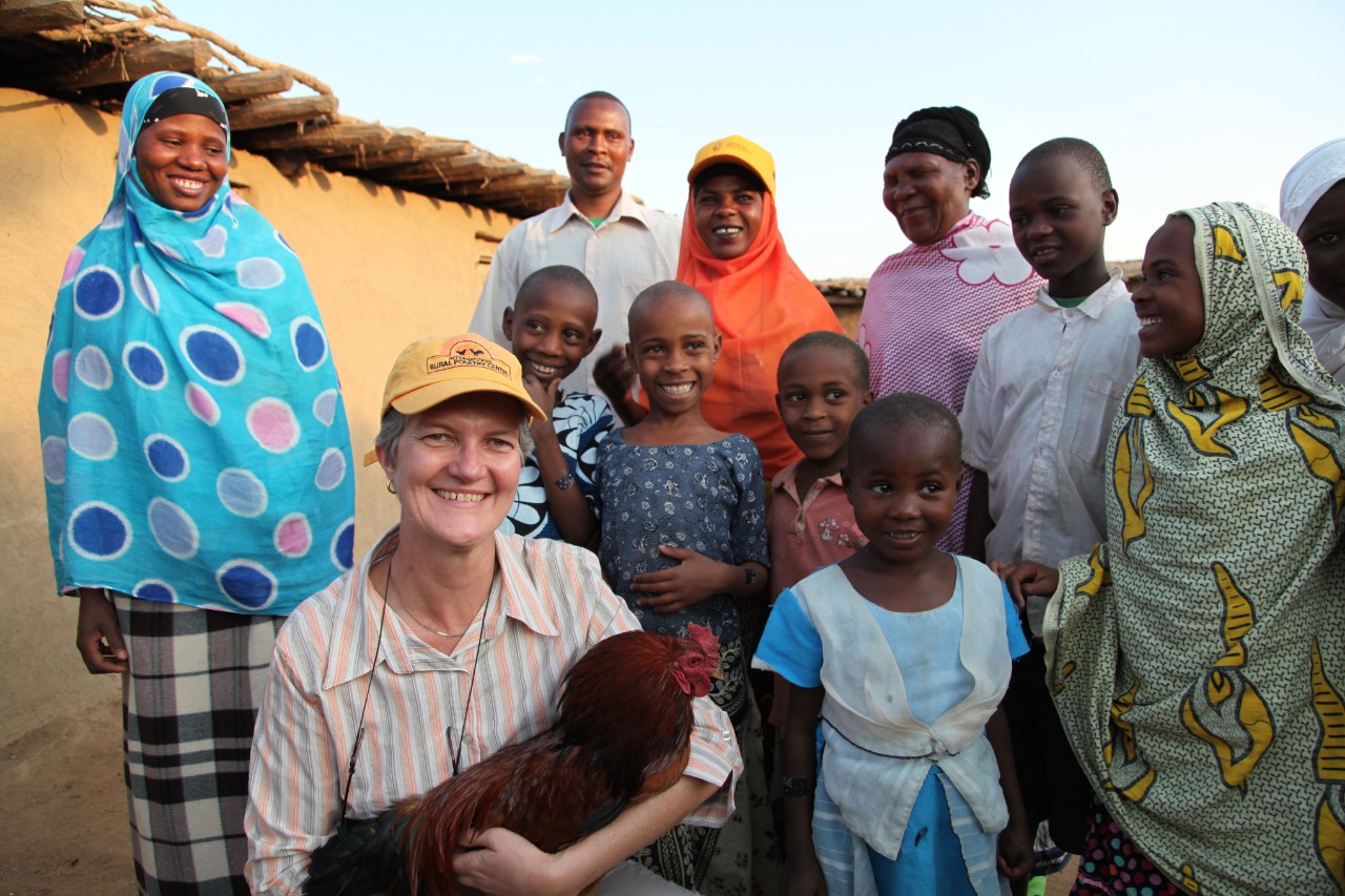 Professor Robyn Alders (front left) has helped small African communities with the health of their precious poultry stock. Photo supplied.