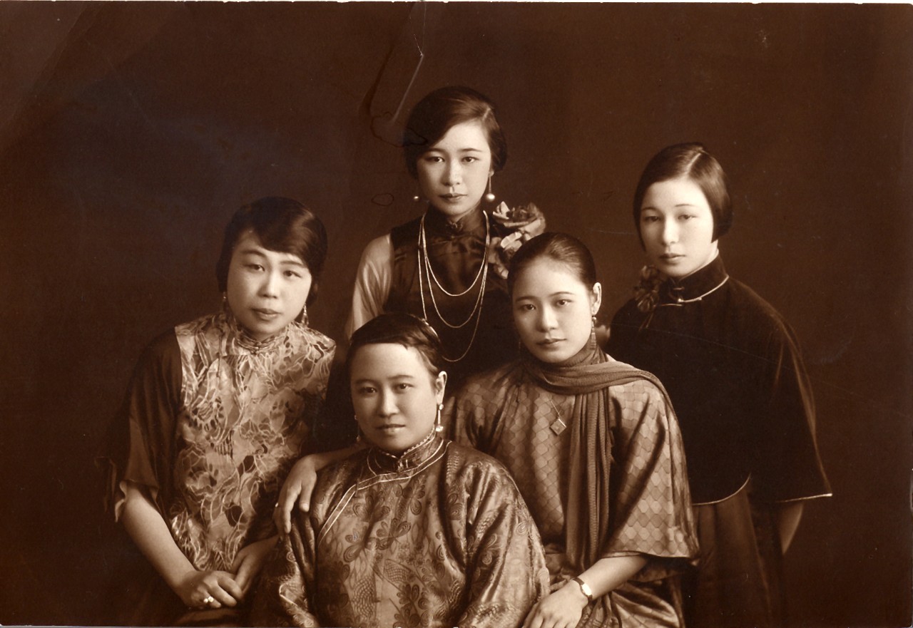 The Kwok family, Shanghai 1931. Clockwise from left: Edith Kwok, Elsie Kwok, Daisy Kwok, Pearlie Kwok, Darling Kwok. (Supplied: Private collection of Bobby Fu)