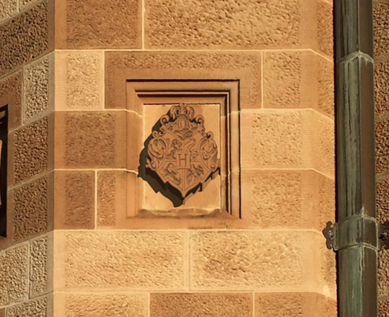 This week stonemasons completed work on a new crest located on the previously-blank sandstone shields on the University of Sydney's Great Hall. While several shields have been etched with various family crests over the years, the latest one marks a move away from the traditional style: stonemasons etched the school crest of the fictitious Hogwarts School of Witchcraft and Wizardry from the Harry Potter novel series.