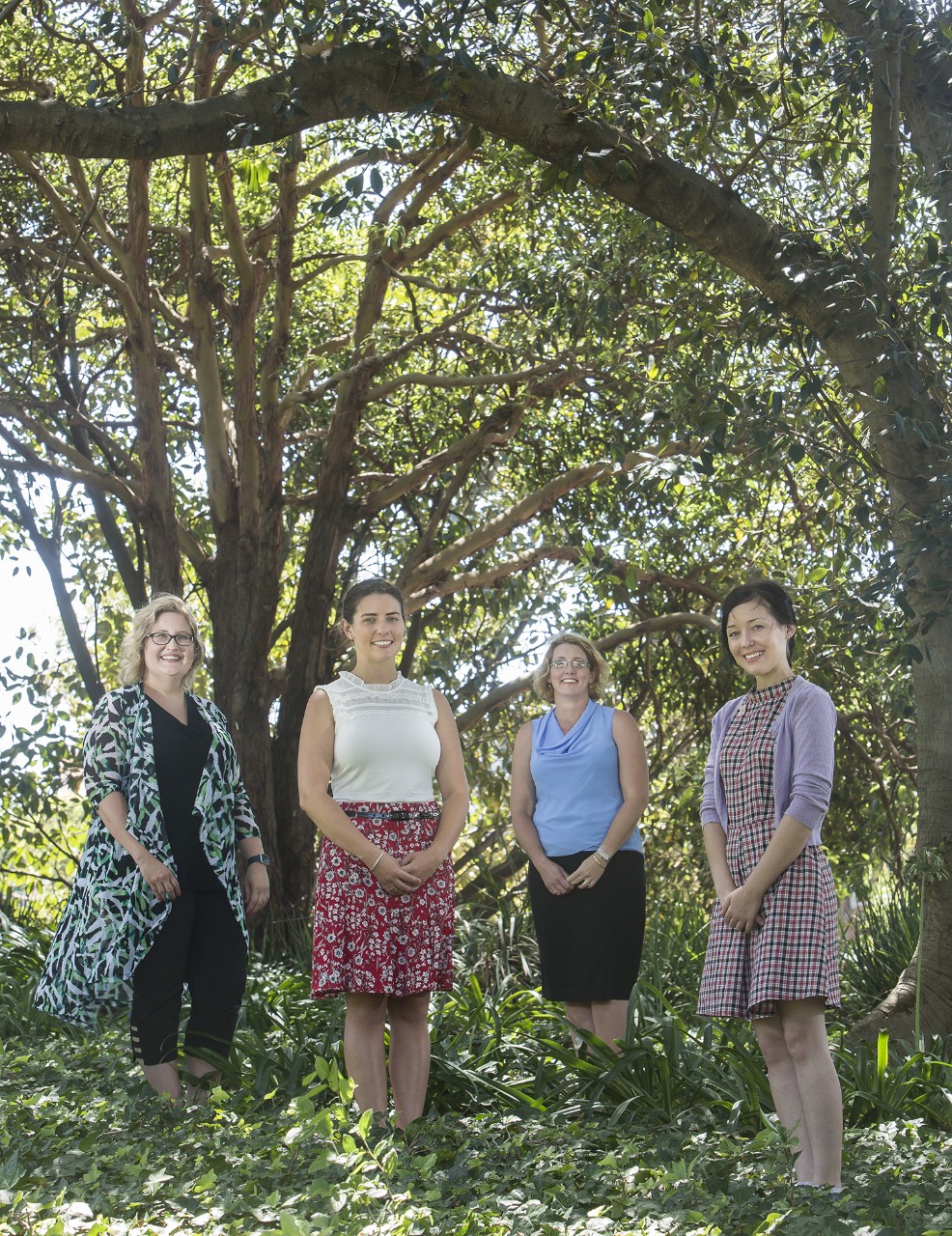 Saving the devil, from left, Professor Katherine Belov, Rebecca Gooley, Dr Carolyn Hogg and Emma Peel (Photo by Matthew Vasilescu).