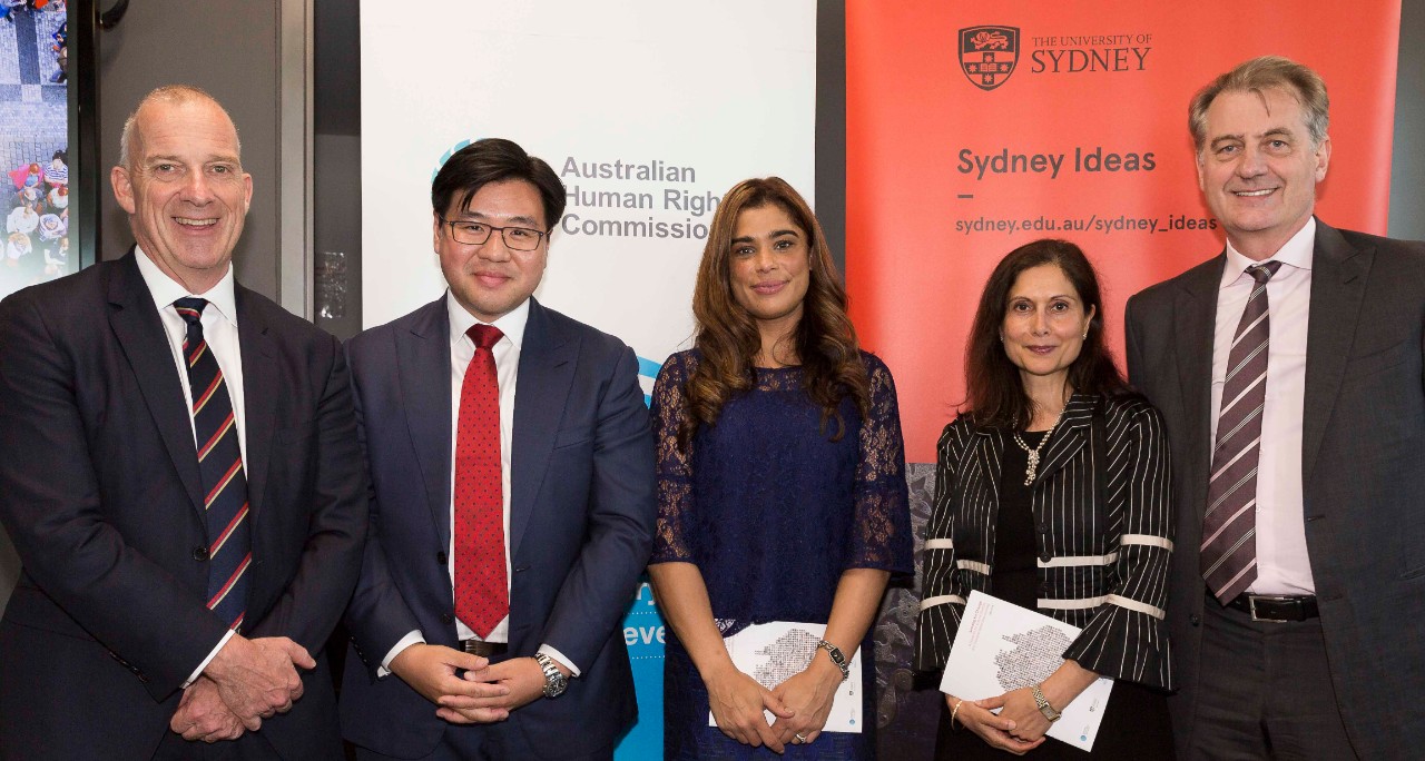 L-R: Dr Michael Spence, Vice-Chancellor and Principal; Dr Tim Soutphommasane, Australian Race Discrimination Commissioner; Ms Cilla Robinson, Partner, Clayton Utz; Ms Swati Dave, Managing Director and CEO, Export Finance and Insurance Commission; Professor Greg Whitwell, Dean, Business School