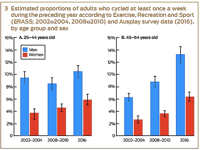 Lead author Professor Adrian Bauman of the University of Sydney's Charles Perkins Centre said: “We found that cycling by middle-aged men has increased since 2002-04, supporting reports of the growth of the Mamil species.