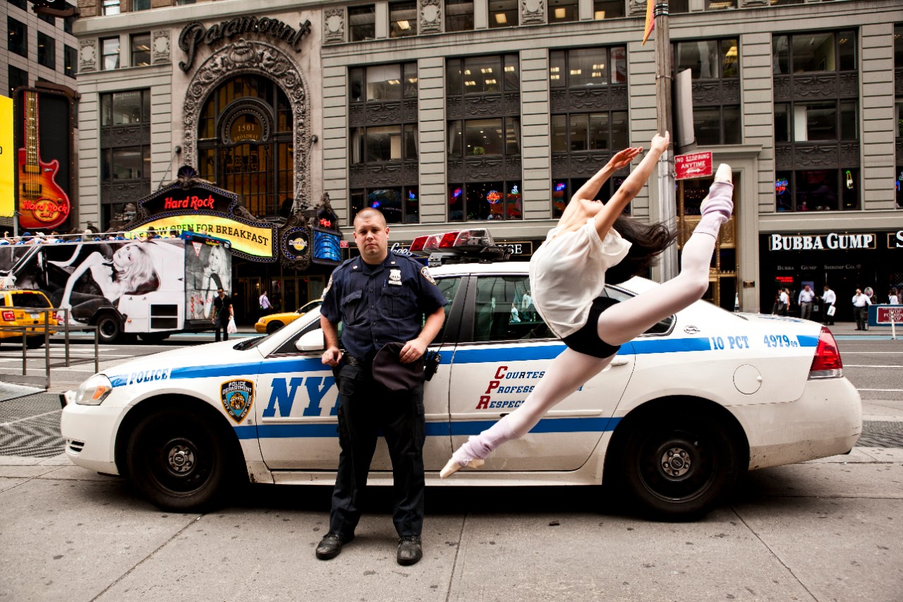 One of Lisa's most famous photographs, an NYPD police officer standing next to a ballet dancer from the Australian Ballet.
