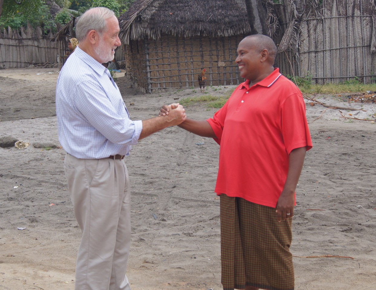 Professor Charles Mackenzie shaking hands with a patient in Tanzania