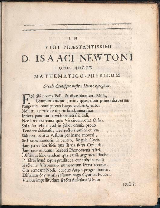 The first edition of Principia features a poem written in Latin by Halley, titled ‘To the illustrious man Isaac Newton and this his work done in fields of the mathematics and physics, a signal distinction of our time and race’.