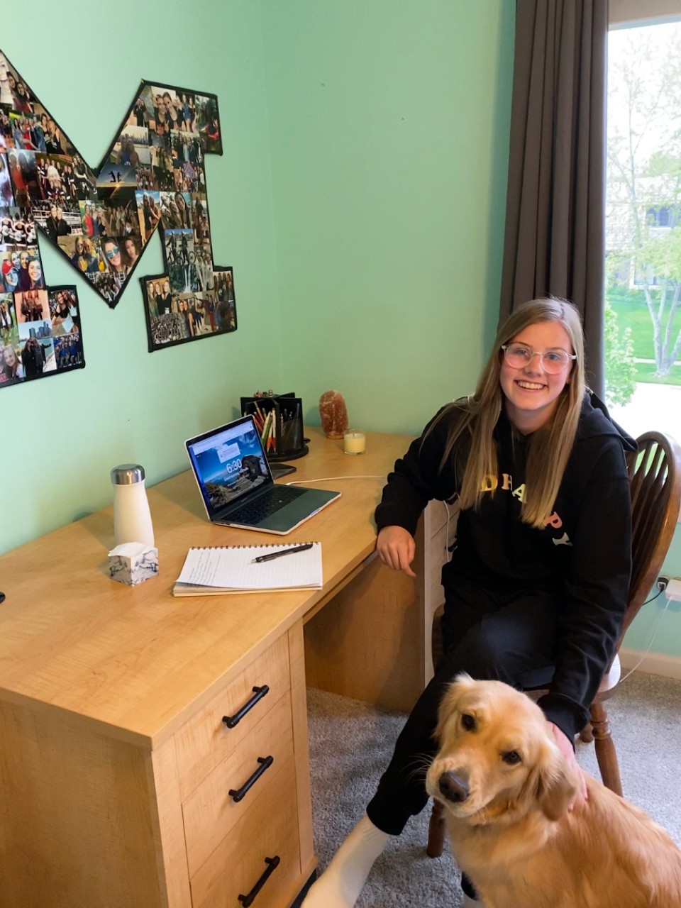Michelle studying from her home in Chicago (United States) with her dog Ellie (May 2020).