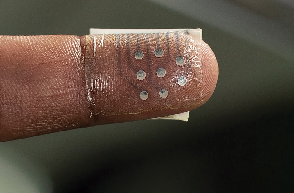 The Tacttoo can last on a finger tip for the entirety of an eight-hour working day.
