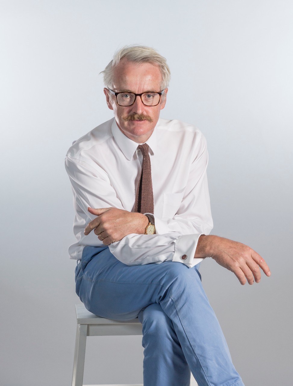DetecteED-X CEO Professor Patrick Brennan. Top of page, an image from a lung CT with no signs of COVID-19, from the the training platform.