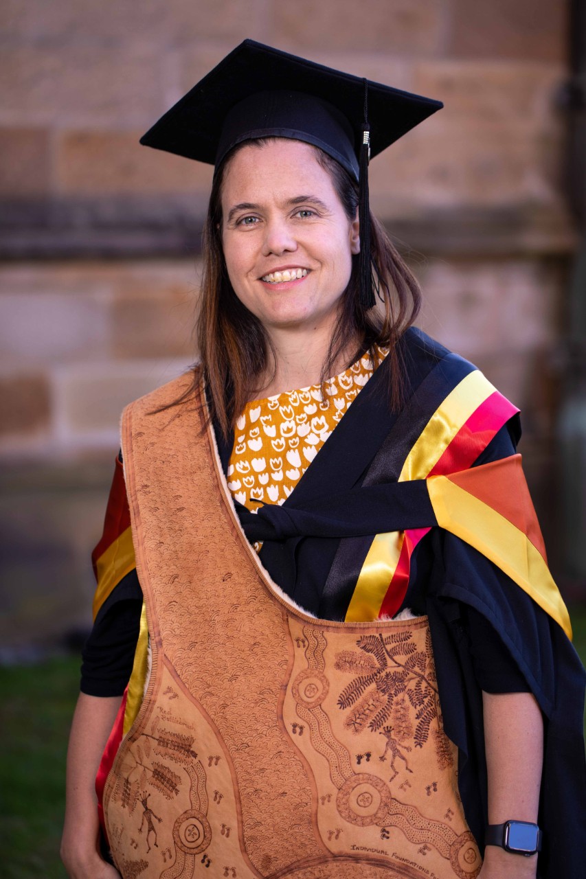 In a ceremony held at the Great Hall on Wednesday, Katie joined the first cohort of MBA students to graduate since the start of the pandemic, wearing a kangaroo skin cloak made by Associate Professor Lynette Riley.