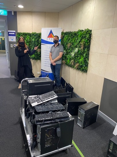 Heidi Bradshaw, CEO of Narang Bir-rong and Stephen Elbourn, Yirigaa board director and owner of ITIC Systems, Education and Research, with the computers he donated.