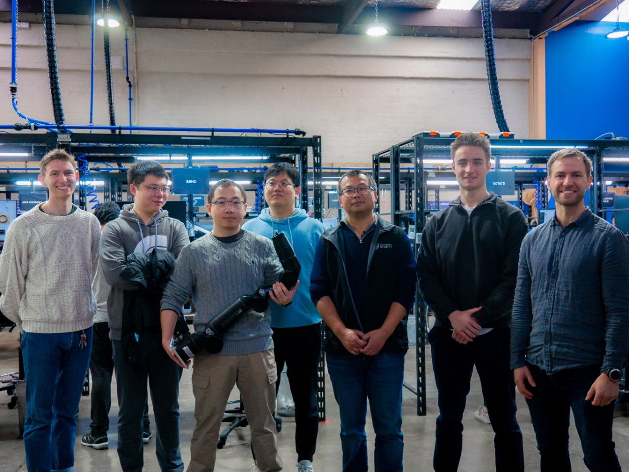 Dr Xiaofeng Wu (third from right) with the Reach Robotics Team. Credit: Reach Robotics.