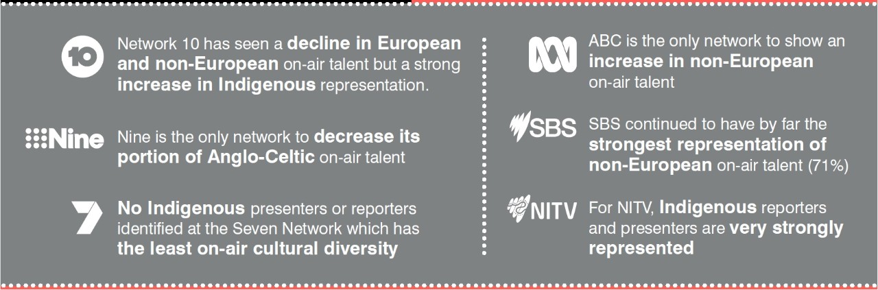 “But there has also been an increase in perceived barriers to career progression for Indigenous and culturally diverse staff behind the camera.”