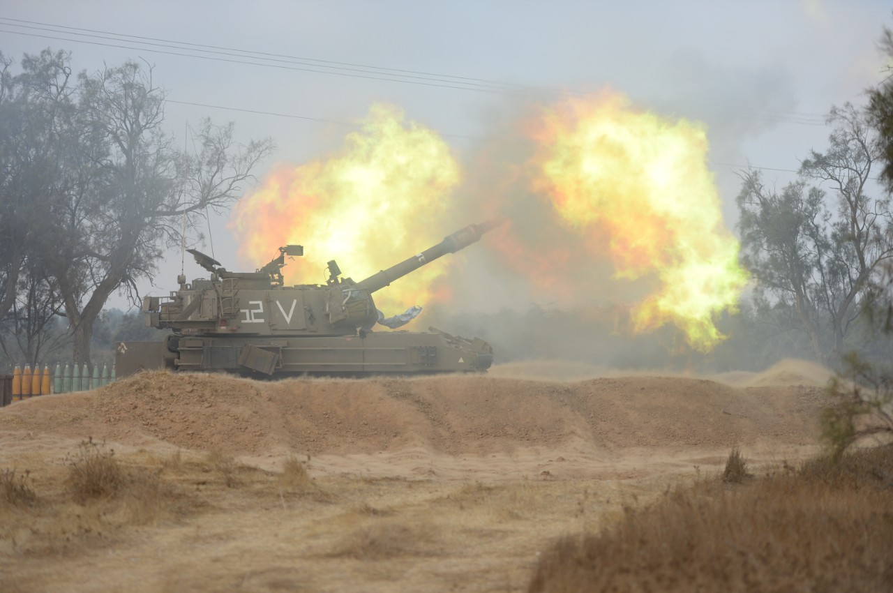 Israel Defense Forces firing into the Palestinian-occupied Gaza Strip in 2014. Credit: Flickr/Israel Defense Forces