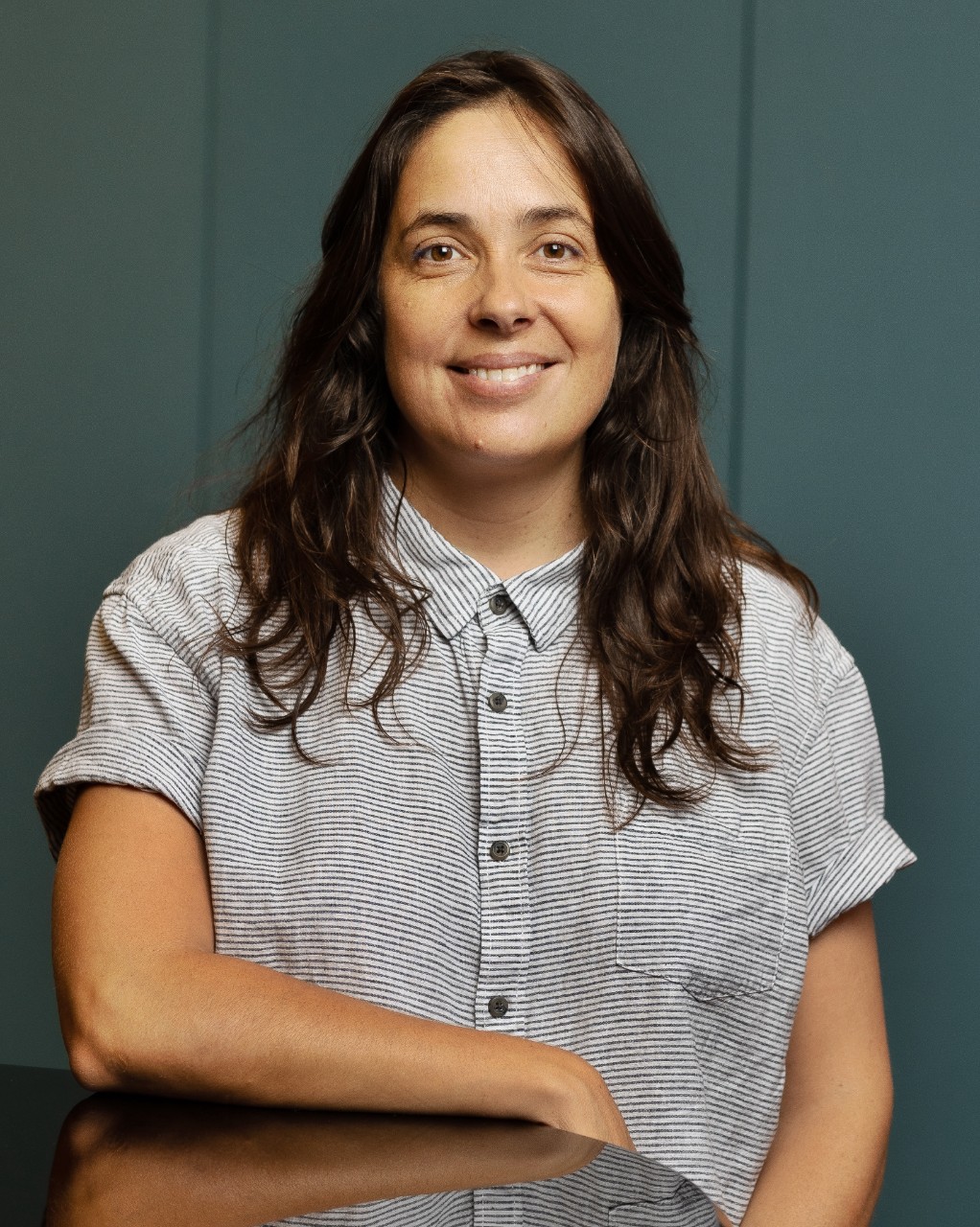 Professor Deborah Cheetham Fraillon looking at her bust.
