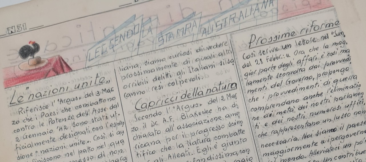 A handwritten Italian fascist newspaper called 'Patria', written by Italian prisoners of war detained in Australia in 1942. Credit: OMAA/Australian War Memorial