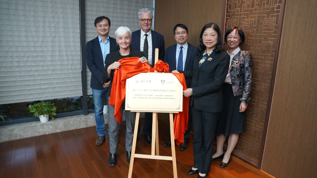 L to R: Prof Huang Jun, Prof Emma Johnston, Vice-Chancellor, Prof Baoliang Chen, Dean, College of Environmental and Resources Sciences , Vice- President He Lianzhen,Prof Zhang Qingyu, Director of the Joint Laboratory of ZJU—University of Sydney.