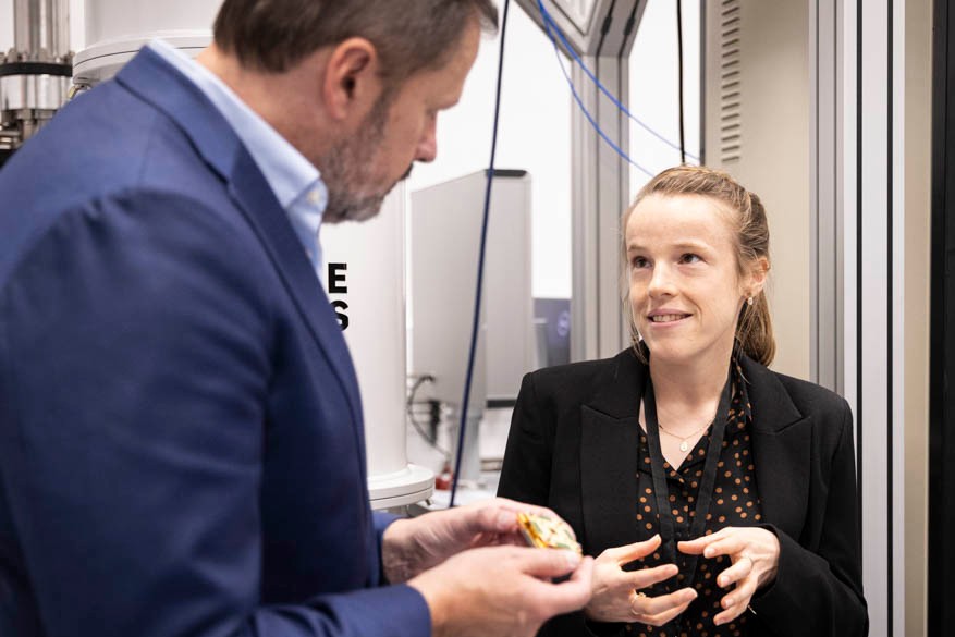 The Hon. Ed Husic, Minister for Industry and Science, and Dr Xanthe Croot from the University of Sydney Nano Institute. Photo: Fiona Wolf/University of Sydney