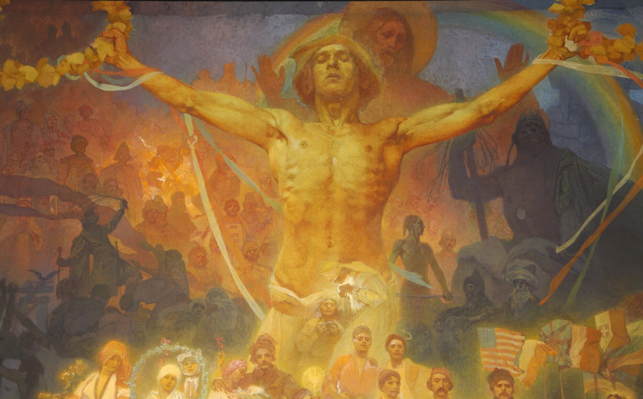 Alphonse Mucha, The Slav Epic XX: Apotheosis Slavs for Humanity. 1926 (detail) egg tempera and oil on canvas, 480 x 405 cm © Mucha Trust 2024.