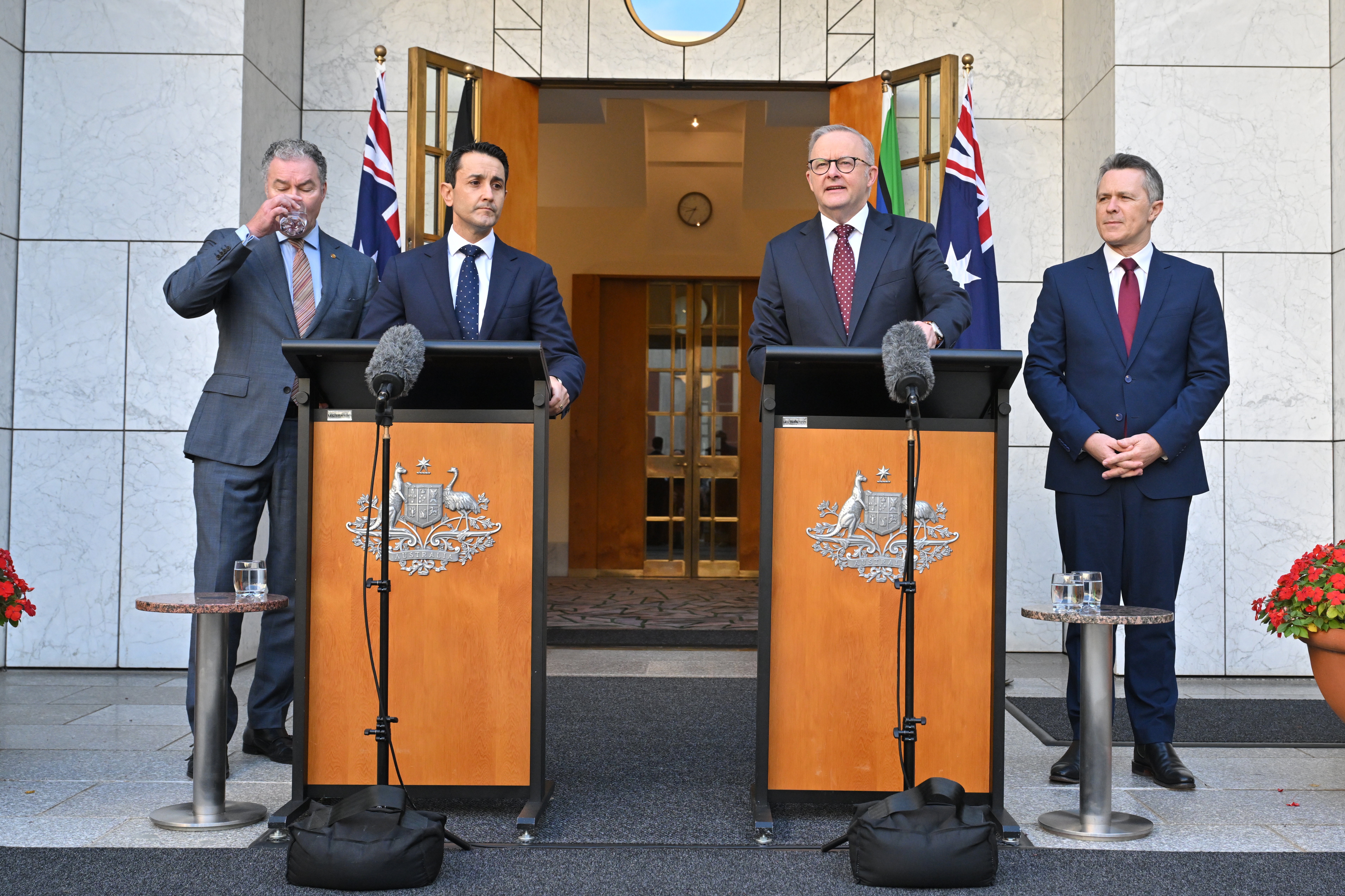 Prime Minister Anthony Albanese and Queensland Premier David Crisafulli announced the funding deal on Monday in Canberra. Photo credit: Mick Tsikas/AAP.