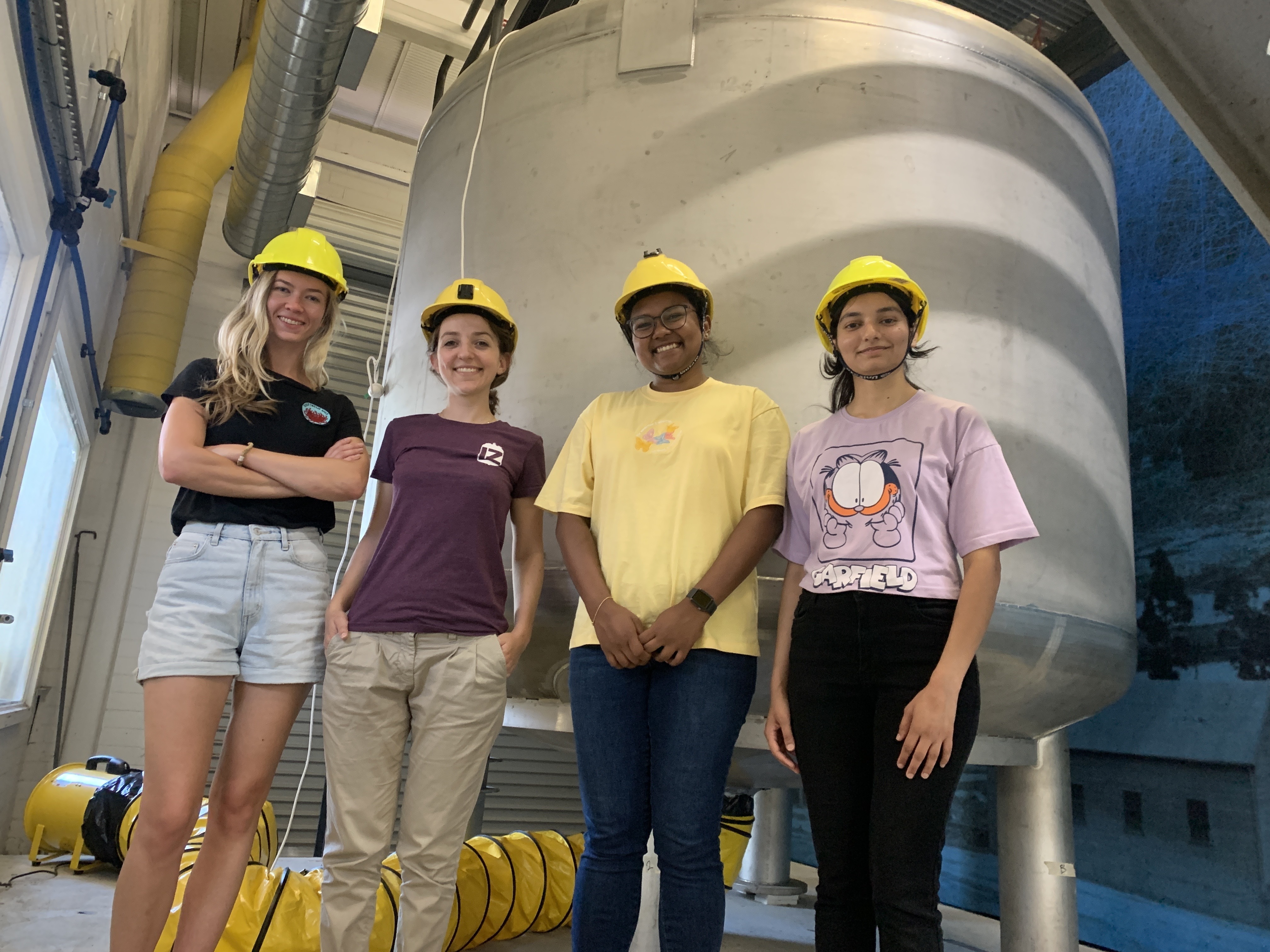 Main image: (L-R) Dr Zuzana Slavkovska (ANU), Dr Theresa Fruth (University of Sydney), Victoria Bashu (PhD student at ANU), Sharry Kapoor (University of Sydney). The vessel in the background is the "Veto Vessel" for the SABRE Experiment.