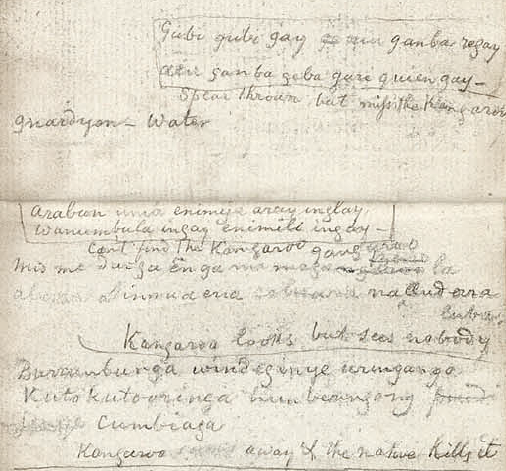 "Songs of the Natives of New South Wales to the North of Sydney"; State Library of New South Wales, A 382: Reverend Lancelot Edward Threlkeld papers, 1822-62, [page 129]
