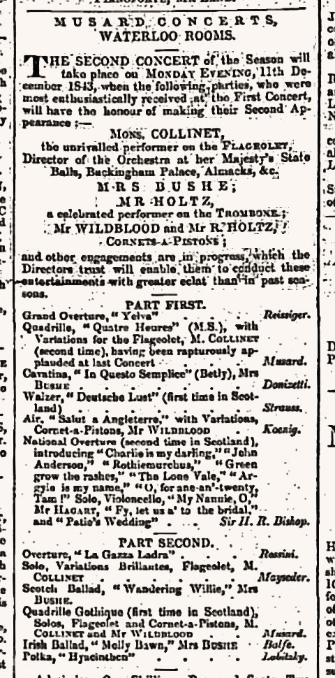 December 1843 to January 1844, Musard concerts, Edinburgh, Scotland