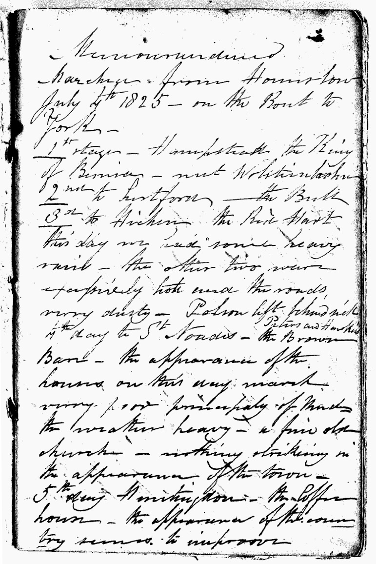 Marched from Hounslow July 4th 1825 - on the Rout to York