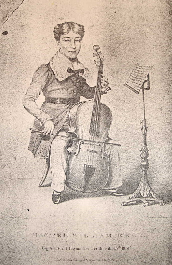 In June 1830, his second son, William, reportedly aged 8 (actually 9) made his public debut as a cello soloist at the Theatre Royal, Bath. Thomas had evidently also maintained working contacts with the Haymarket Theatre on visits to London. A Master Reed (probably German) began to appear in minor roles there during the London summer season, and a few months later, William made his first appearance in London there, performing a cello solo, for Eliza Paton's benefit on 15 October 1830, when Master Reed (German) also appeared as Franco in Bishop's opera Guy Mannering.