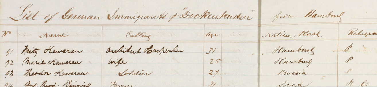 Arrived Melbourne, VIC, 12 September 1855 (per Alster, from Hamburg, 2 June, age "27")