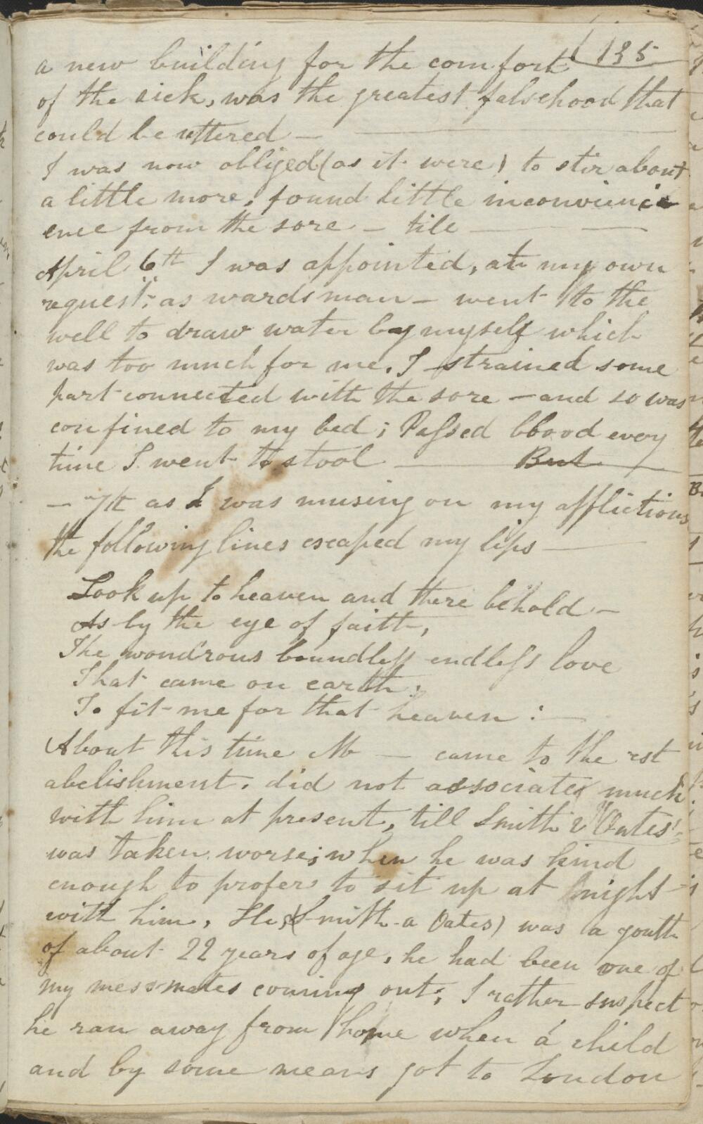 [70] 7th. The Band Master was at one Time one of our most useful Men; he was Band Master, principal Attendant in the Hospital, and Head Master in the Adult School, all at the same Time; and his Remuneration was Eighteen Marks a Day, Four more than an ordinary Overseer, and a monthly Allowance of 100 Marks out of the School Funds . . . and as he earned a little Money besides all, by private Teaching, and thus for the most part fed and clothed himself without drawing his Allowances, his Marks rapidly accumulated, and there were 15,004 to his credit when he got his Ticket . . .