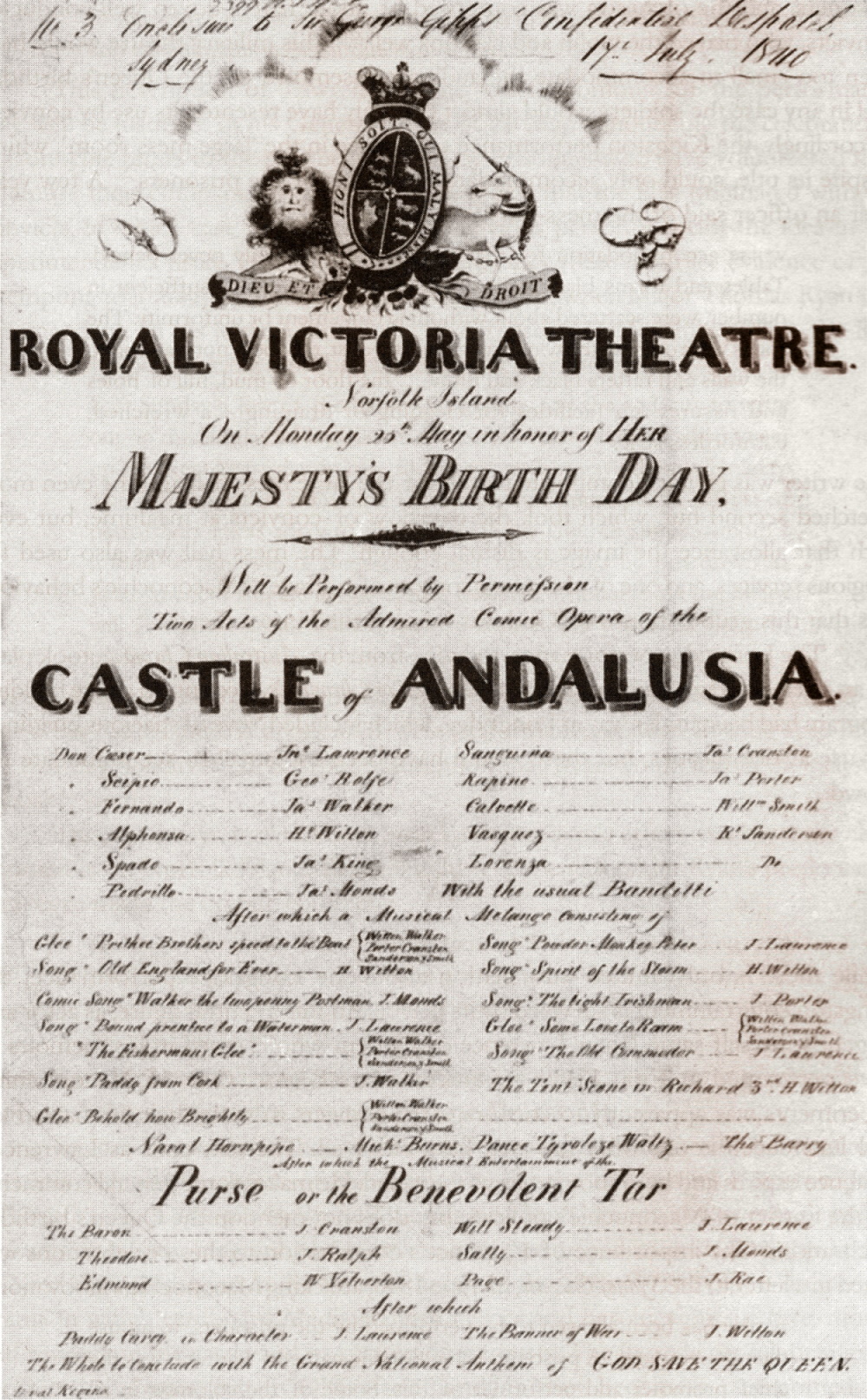 [154] . . . He allowed first class prisoners to wear garments other than convict clothing, and he established a band with instruments and music which cost the authorities £103.15.0, a not inconsiderable sum in those days . . .
