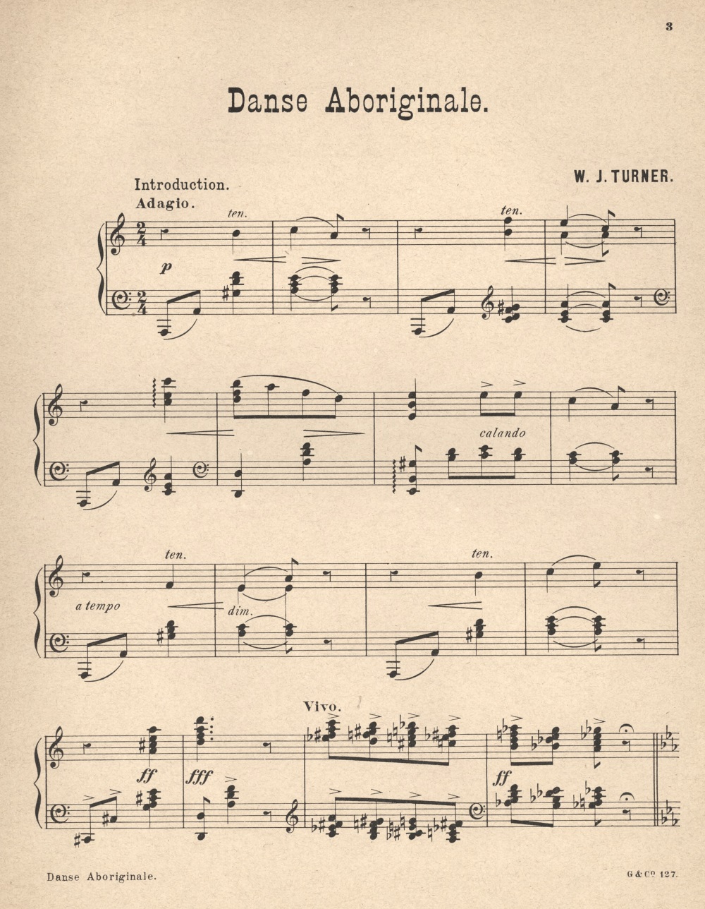 Danse Aboriginale, for the pianoforte by W. J. Turner, performed with great success by the Victorian Orchestra (Melbourne: W. H. Glen & Co., [1890])