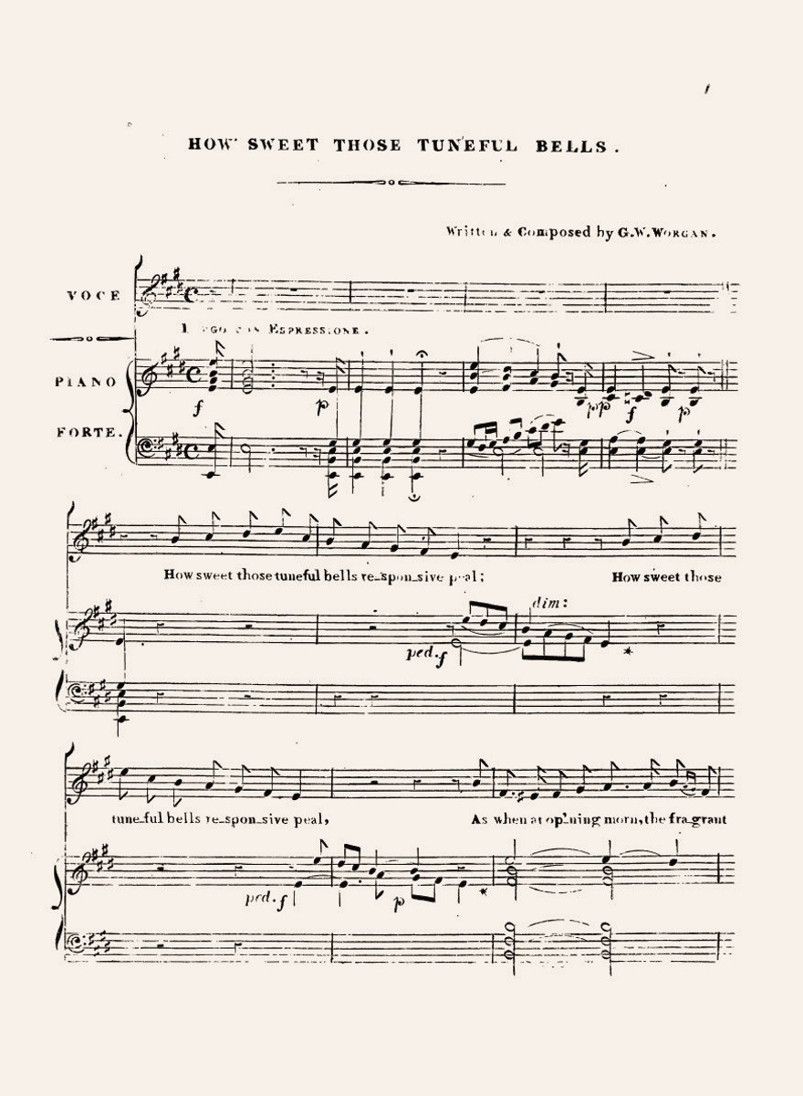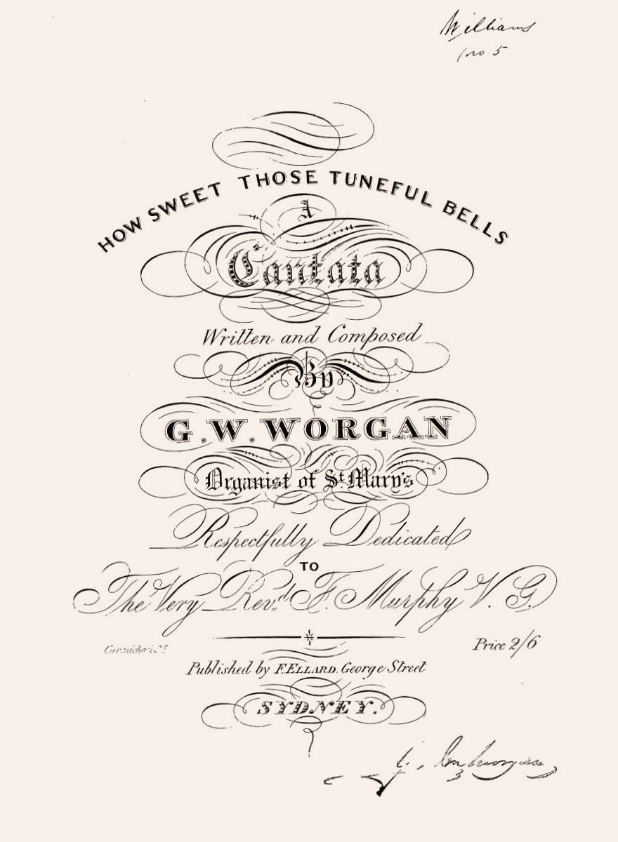 In 1842, in succession to Isaac Nathan, he briefly served as organist of St. Mary's. In December that year, Ellard engraved and published Worgan's only known composition, How sweet those tuneful bells, a "cantata" for solo voice and piano, written in anticipation of the cathedral's first peal of bells, and dedicated to the vicar general, Francis Murphy. During the 1840s he also regularly performed as a pianist and vocalist at convivial civic and masonic events. In 1847, in his late 40s, at St. James's church, he married a fellow concert and choir singer, Mary Tuohy, and on 30 December 1849 a daughter, Mary, was born.
