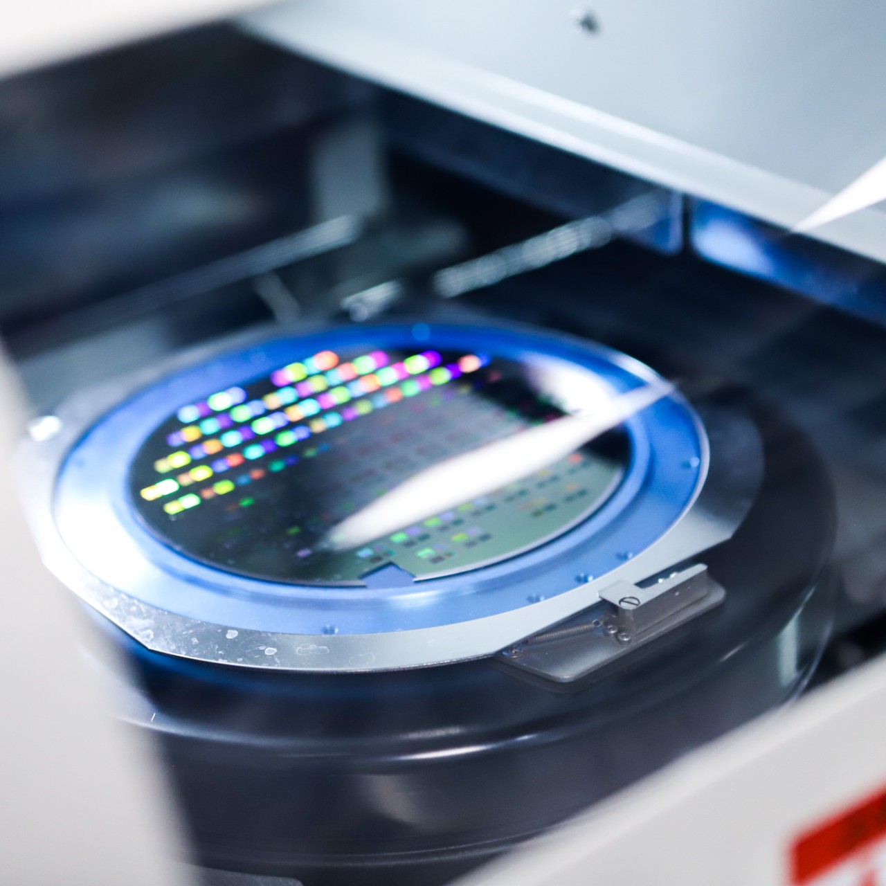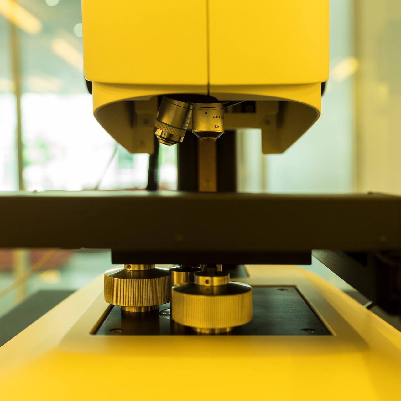 Scanning Electron Microscopy (SEM) is the process whereby a tightly focused electron beam is scanned onto the surface to be imaged. SEM is a key tool for process characterisation of surface topography, cross-section profiles, elemental composition, and crystallography. Atomic force microscopy (AFM) is a versatile technology consisting of many characterisation methods. AFM performs scanning probe microscopy, scanning the surface of a material with a nanoscale cantilever, either through direct contact or through oscillating the cantilever just above the surface. AFM has a wide range of applications including nanoscale materials and surface characterisation, electrical materials characterisation, interaction forces and mechanical properties mapping. The Reflectometer and Ellipsometer offer characterisation of thin films, while optical microscopy uses a series of lenses to focus light that is reflected from or passed through a sample; various forms of light and magnification can be used to visualise the sample. Probe stations characterise electrical properties and device functionality.