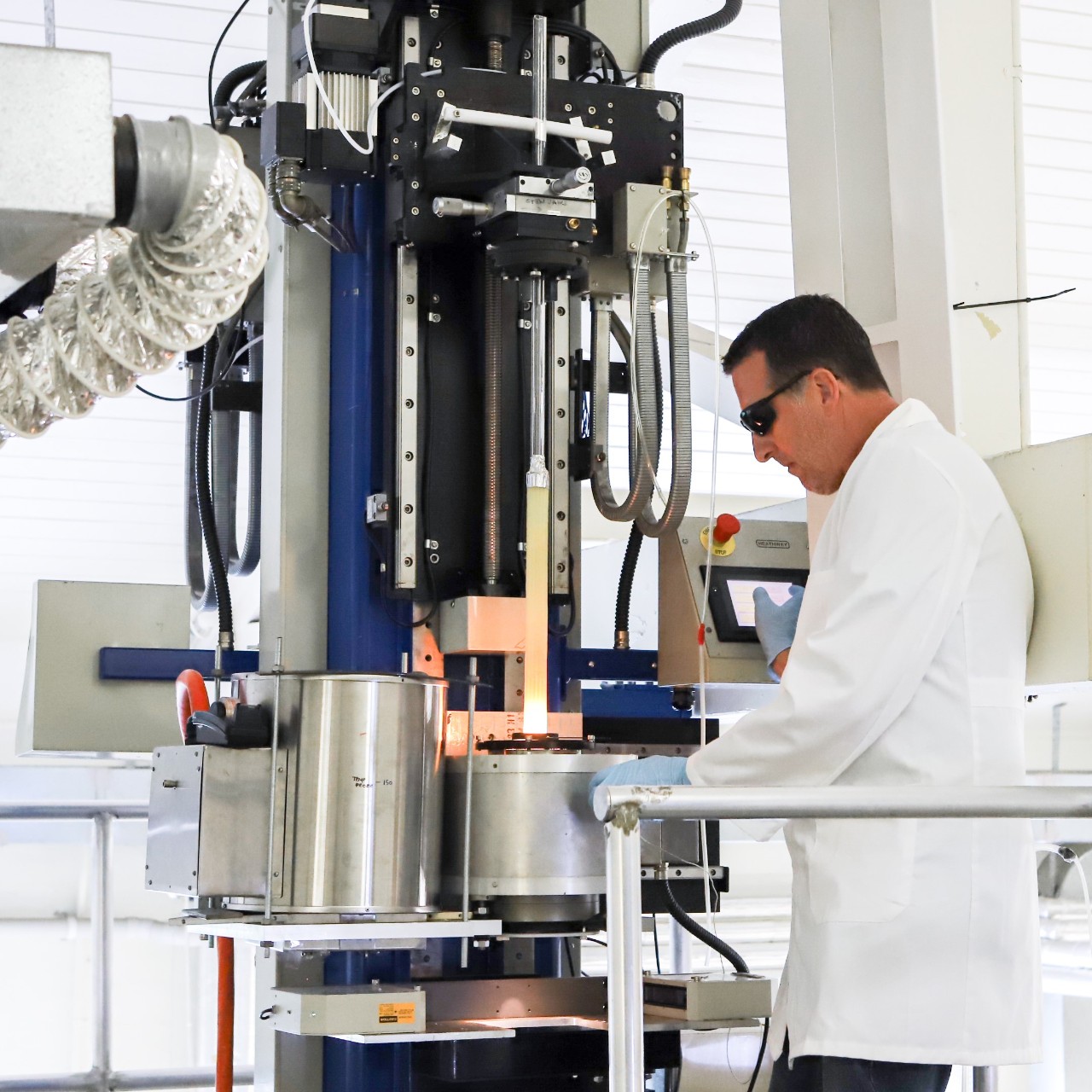 We run a CNC mill on site which allows us to accurately drill holes in various materials, giving us the ability to draw those materials down into fibres whilst maintaining the hole structures using internal pressure.