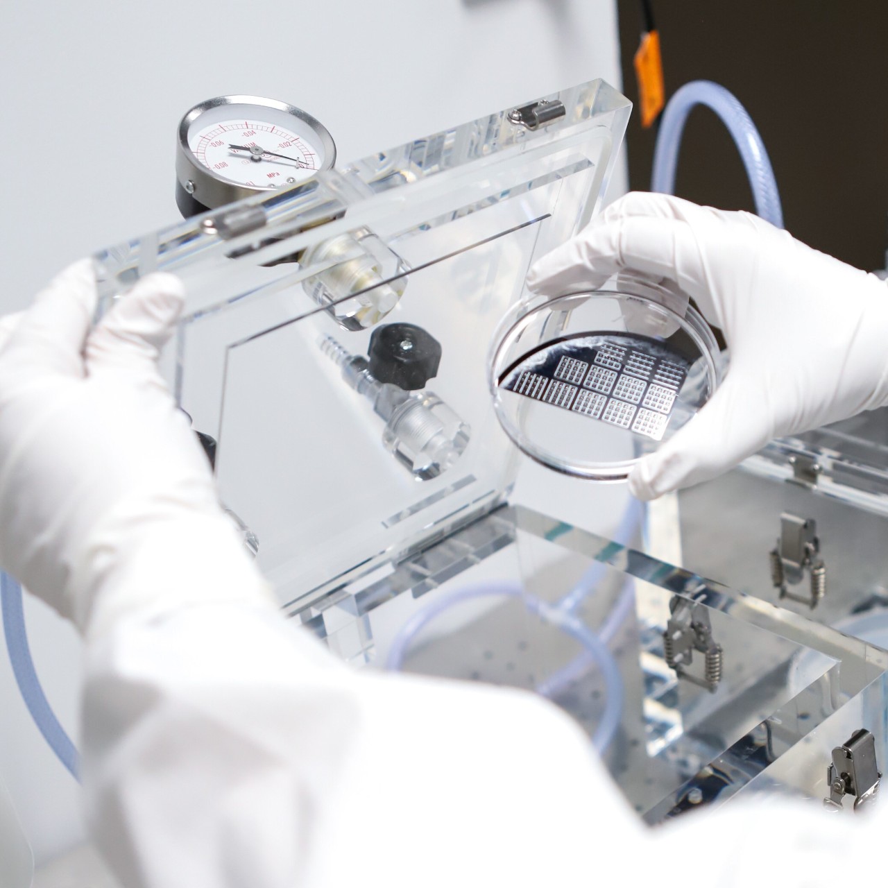 Soft lithography is a technique used to imprint structures into mechanically soft materials from a master mould or stamp. This method of pattern transfer is used to make microfluidic devices for applications which require biocompatible materials such as Polydimethylsiloxane (PDMS). Equipment includes spin coaters (for thin layers), ovens, mixers and casting equipment.