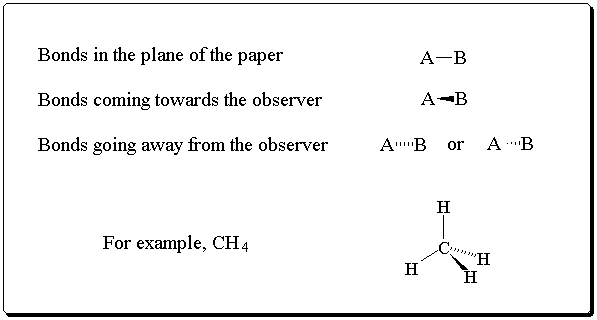 Where it is important to represent the three-dimensional shape of a molecule, the following convention is adopted: