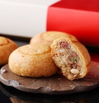 ‘In my hometown, Suzhou, we make local style mooncakes called ‘Suzhou-style mooncake’. It has a pastry surface and different fillings, such as five-nuts, sweet bean paste, jujube paste, which are sweet flavours. We also have a salty-filling flavour, which we use pork or beef stuffing with some spring onions, salt, MSG and soy sauce for seasoning. After baking, they will have intense wheat and meat aromas which smells quite tempting. So, if you want to have a Suzhou-style moon cake, I will highly recommend you try the meat-filling mooncakes.’