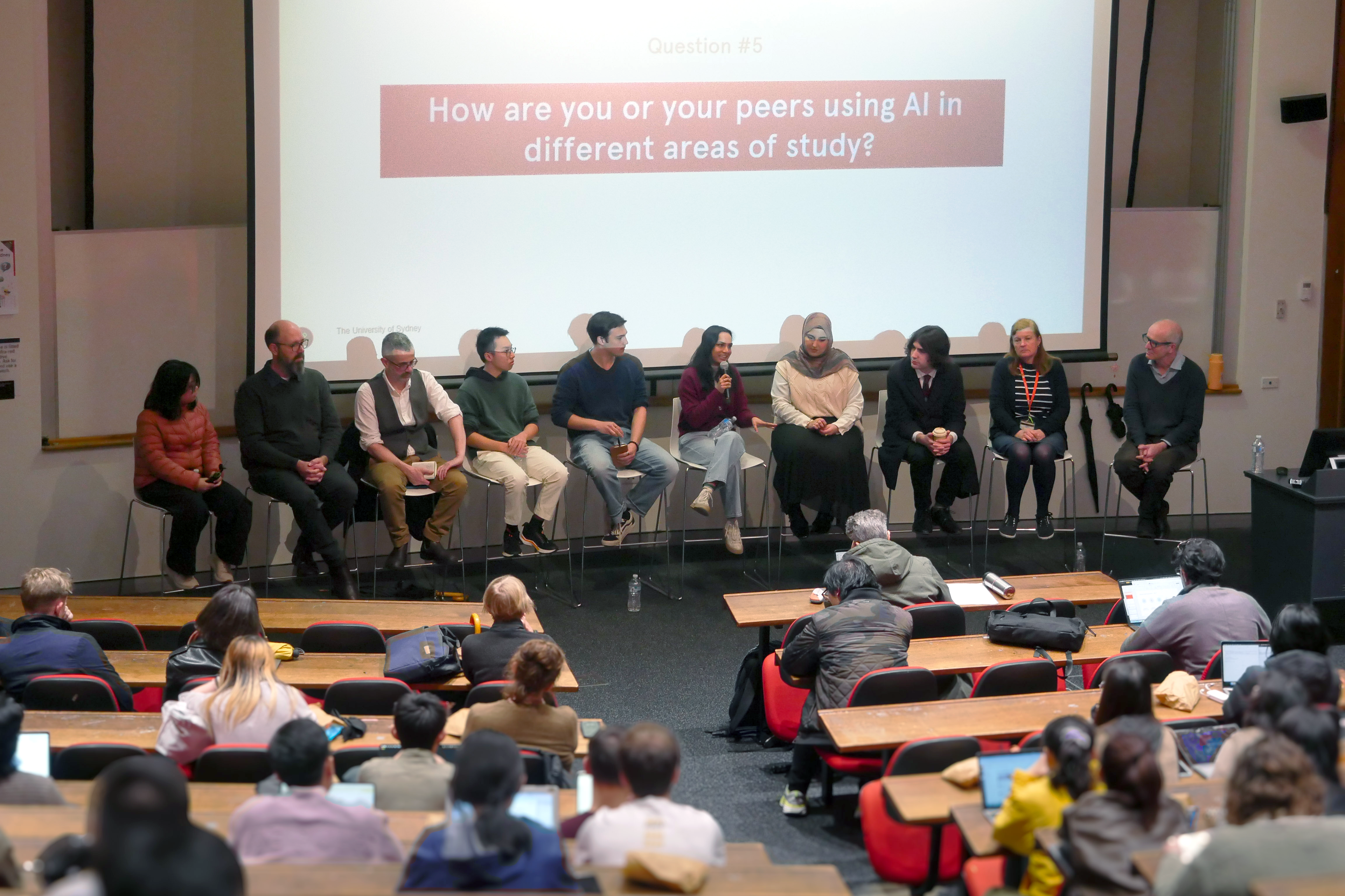 Hosted by by Professor Adam Bridgeman, Pro Vice-Chancellor (Teaching and Learning) and Professor Danny Liu, Professor of Educational Technologies, the panels were an opportunity for students and staff to engage in open conversation, share practical advice, and reflect on how AI is being, and should be, used across the University.